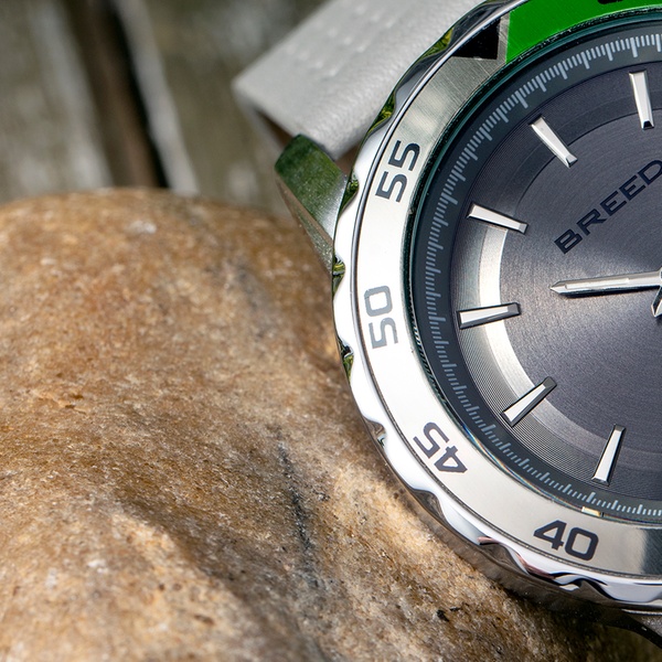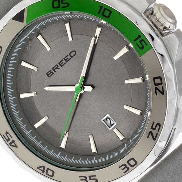 - BRD8304: Gehäuse: Silber / Armband: Grau / Zifferblatt: Grau / Lünette: Silber-Grün