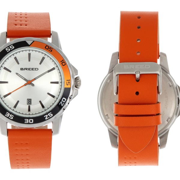 - BRD8302: Gehäuse: Silber / Armband: Orange / Zifferblatt: Silber / Lünette: Schwarz-Orange