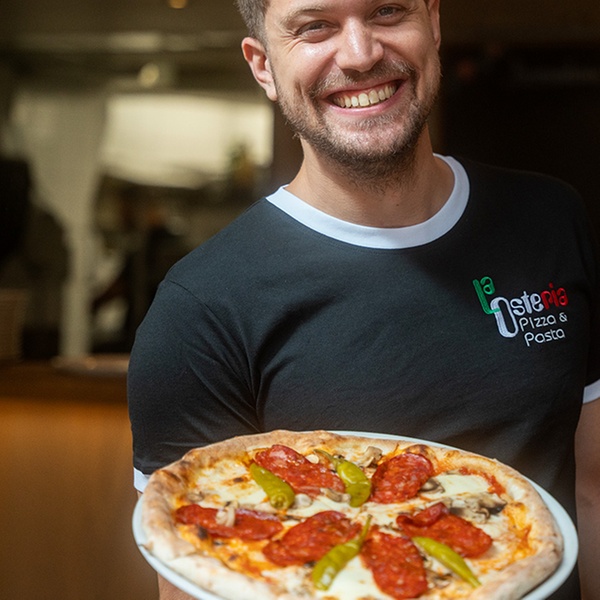 • Wähle aus über 15 hausgemachten Pasta-Gerichten oder einer Pizza nach Wahl aus der aktuellen Speisekarte.