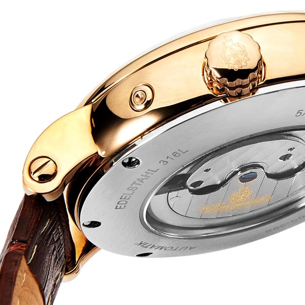 - Farbe Ziffernblatt: Kupferbraun, guillochiert