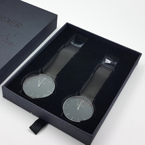 - Farben: Herren-Edelstahluhr in Schwarz, Damen-Edelstahluhr in Silber-Weiß