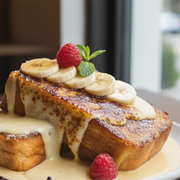 • Creme Brulee: Zimtiger-Brioche-French-Toast mit Creme brulee und Banane