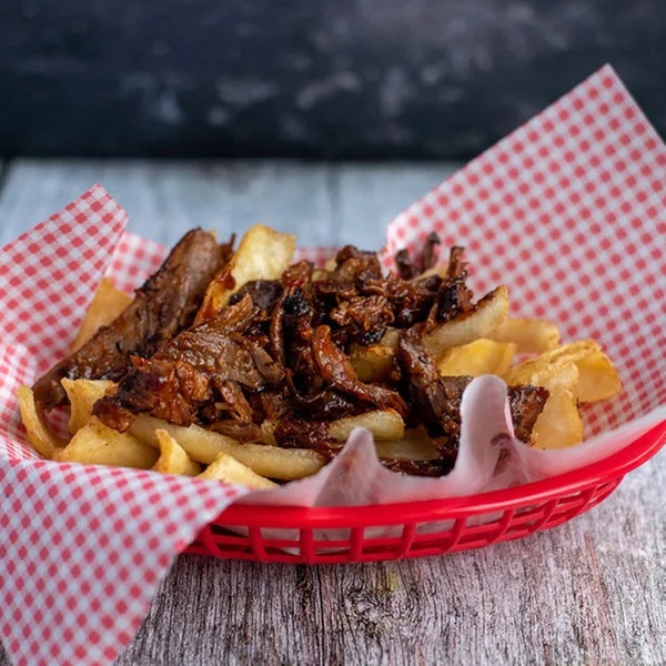 • BBQ-Burger: Brioche Bun, karamelisierte Zwiebeln, Beef Bacon, Römersalat, Tomate, BBQ Sauce, House Sauce