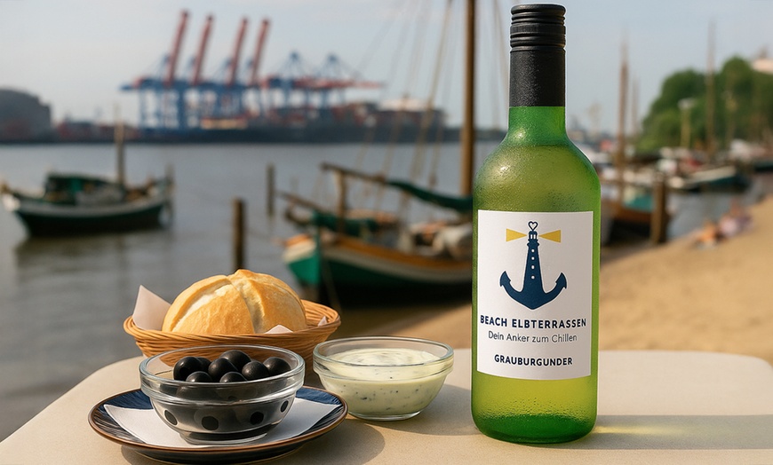 Wer träumt nicht von einer genussvollen Auszeit am Elbstrand mit gutem Wein und tollem Ambiente? Auf den malerischen Elbterrassen wird dieser Traum wahr: Genießt eine Flasche erlesenen Grauburgunders zusammen mit einem köstlichen Snack aus Brot, Dip & Oliven. Einfach zurücklehnen und den Moment schmecken.