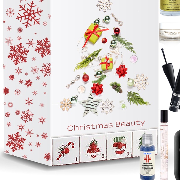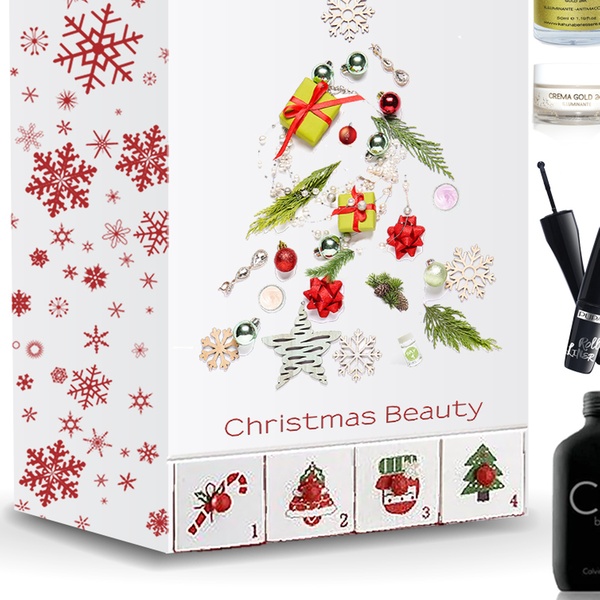 Beauty-Adventskalender mit Kosmetikartikeln und einer Kosmetiktasche für Unterwegs