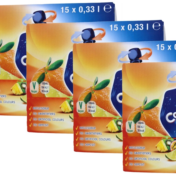 - Zutaten: Quellwasser, Mehrfruchtsaft 10% (Orangensaft, Apfelsaft, Maracujasaft, Kiwisaft, Ananassaft, Grapefruitsaft, Limettensaft, Bananensaft), Zucker, Säuerungsmittel Citronensäure, natürliches Aroma, Vitaminmischung: Vitamin C, Niacin, Vitamin E, Vitamin B6, Biotin, Vitamin B12; Glukose-Fruktose-Sirup (aus Fruchtsaftkonzentrat)*