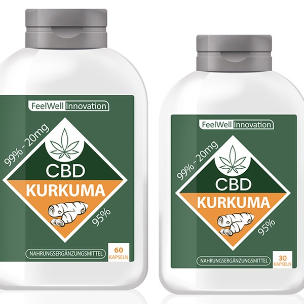 CBD-Kurkuma-Kapsel enthält 95% Kurkuma in Verbindung mit 10 mg CBD ohne THC