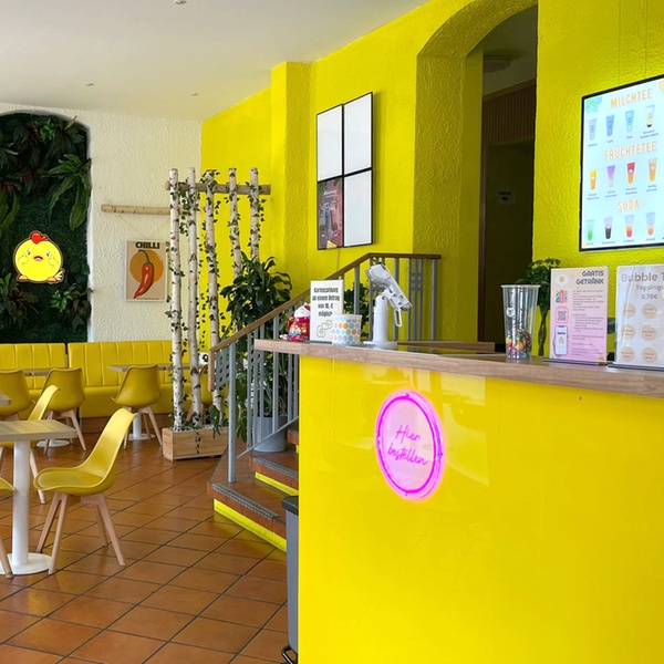 Dazu gibt’s eine breite Auswahl an Beilagen wie Pommes, Zwiebelringe, Mozzarella Sticks, Kimchi oder Maiskolben – frisch, heiß und richtig lecker. Und weil ein gutes Meal auch gute Drinks braucht, warten auf dich kreative Früchtetees, Sodas, Milchshakes und Milchrees in Sorten wie Mango, Cookies & Cream oder Matcha.