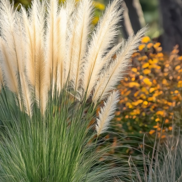 - Bei Blüte: silbrige, dekorative Blütenrispen im September