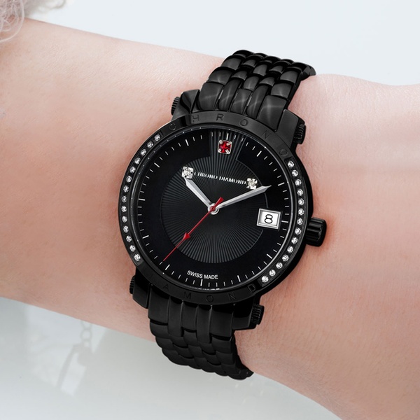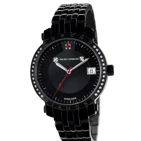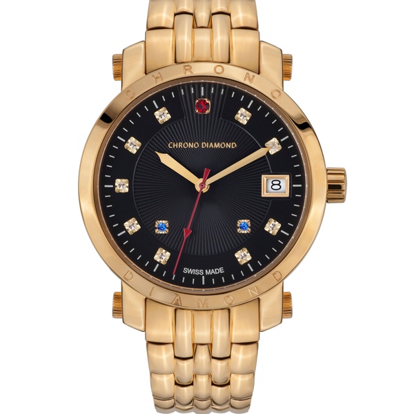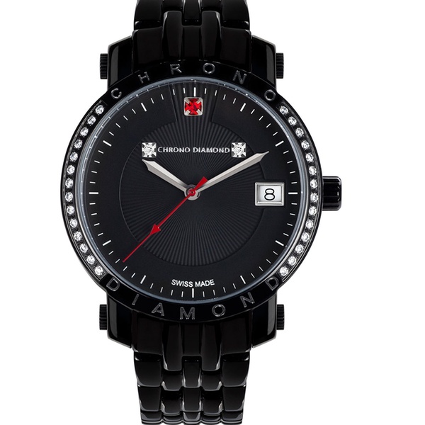 - Chrono Diamond Damenuhr Nesta Schwarz IP Red Stone 10610C - Swiss Made