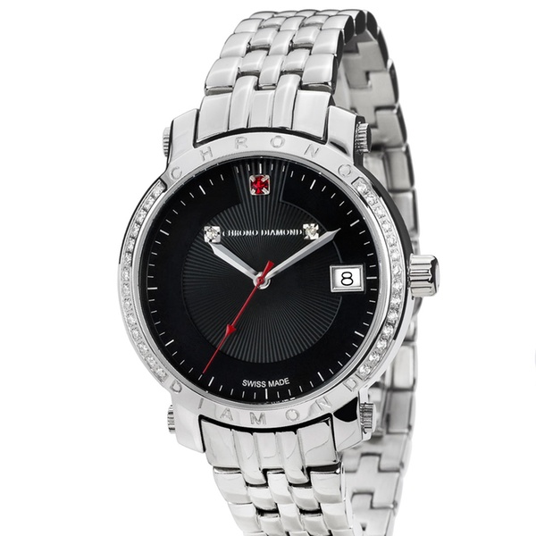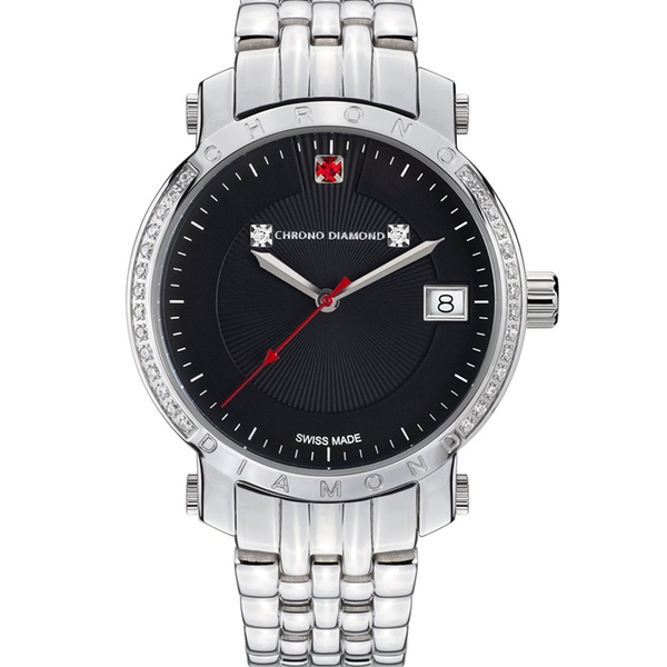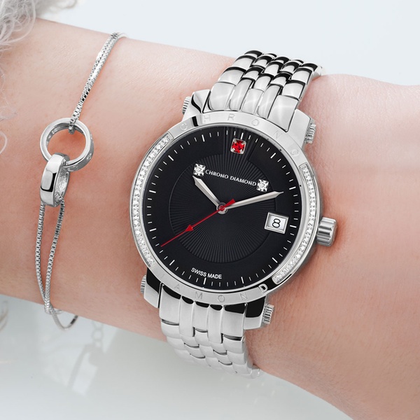 - Chrono Diamond Damenuhr Nesta Stahl Schwarz Red Stone 10610B - Swiss Made