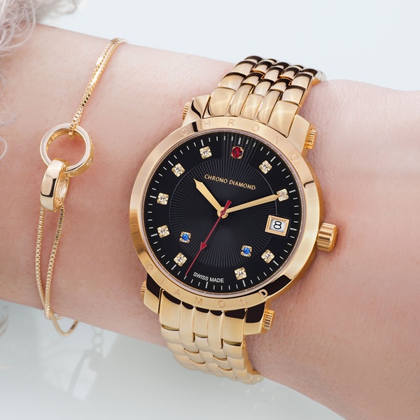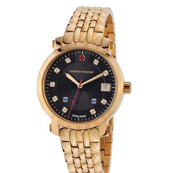 - Chrono Diamond Damenuhr Nesta Gold IP Schwarz 10610F - Swiss Made