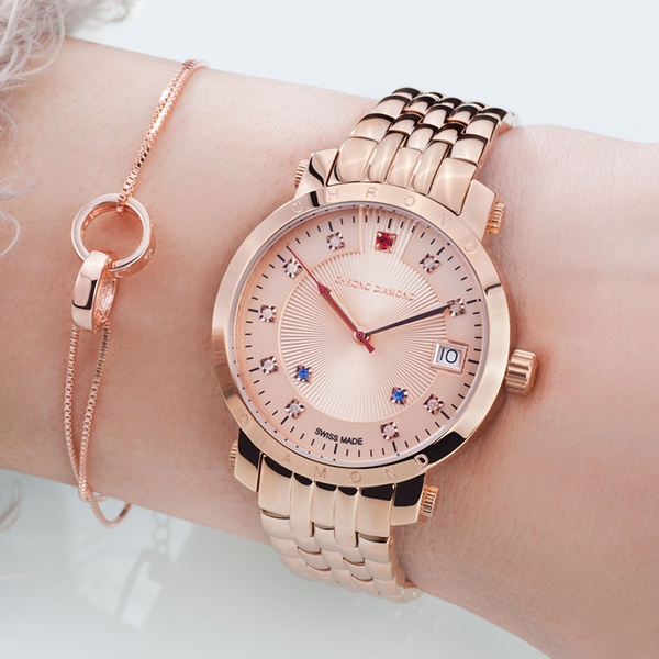 - Chrono Diamond Damenuhr Nesta Roségold IP 10610G - Swiss Made