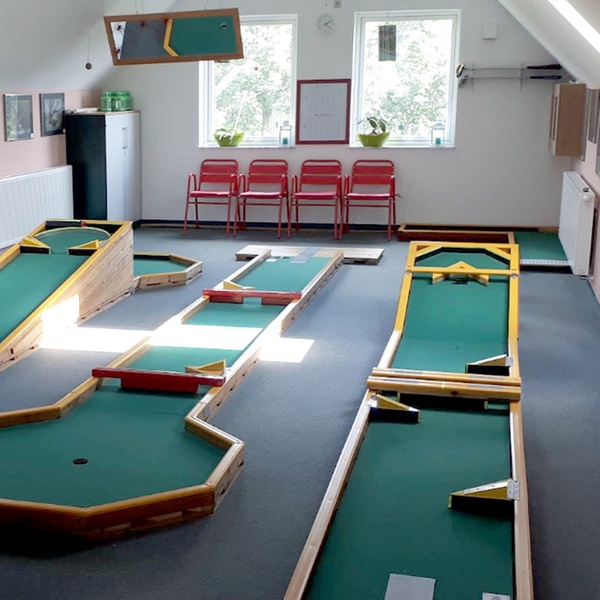 Spiele Indoor-Minigolf auf kreativ einstellbaren Bahnen mit über 50 Varianten und genieße Golfspaß das ganze Jahr bei jedem Wetter