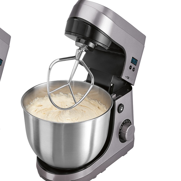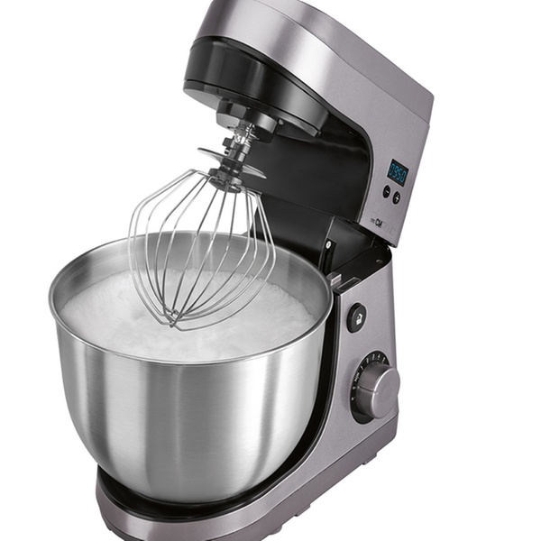 Eine Küchenmaschine mit einer elektronische Geschwindigkeitsregelung, Timerfunktion sowie 4,2 l Schüssel für max. 2 - 2,5 kg Teigzubereitung