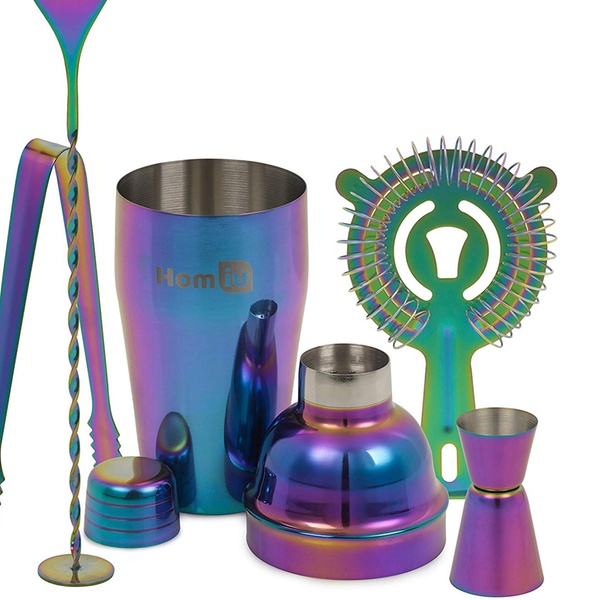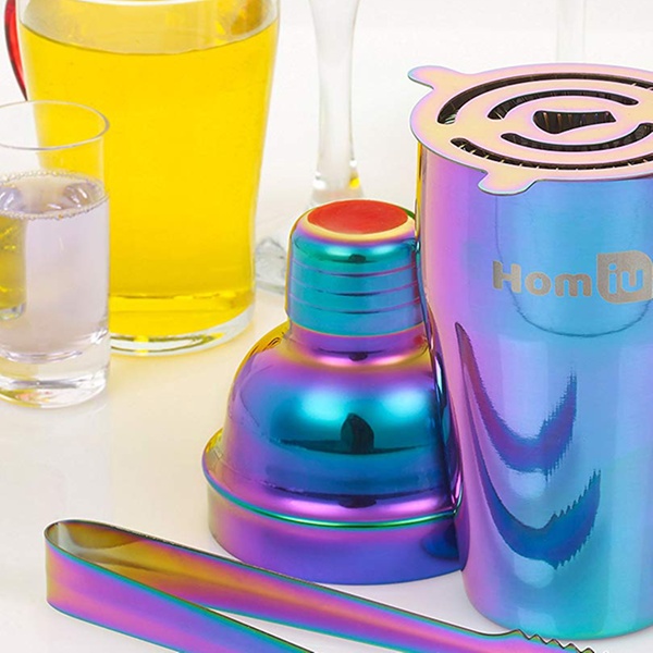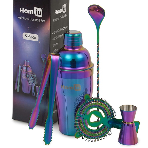 - 5er-Set Cocktailshaker Regenbogen + Zubehör