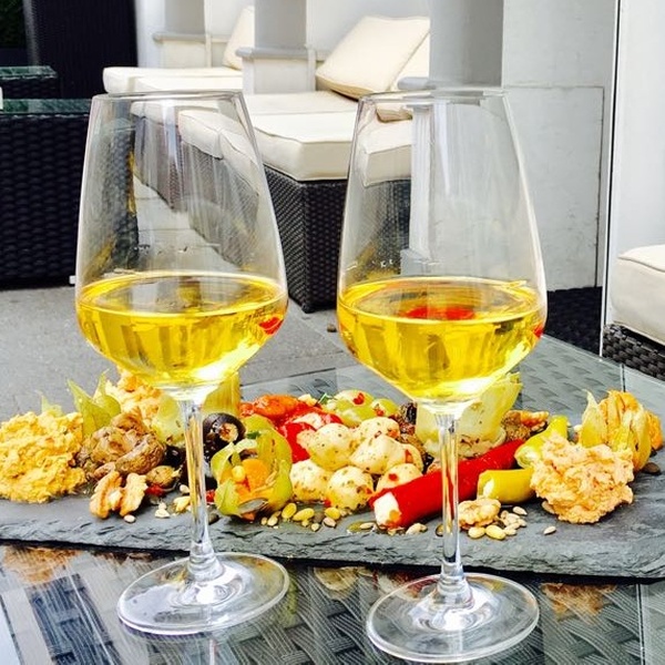 - bis zu 10 auf Schieferplatten servierte hausgemachte Delikatessen z. B. gefüllte Weinblätter, gefüllte Peperoni, Kirschtomaten, Paprika, Champignons, Dips, Ziegenkäse, Schafskäse, Gambas, Salami uvm.