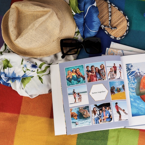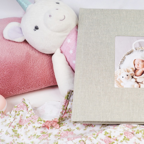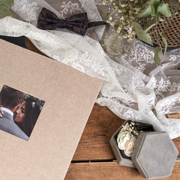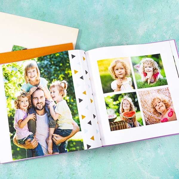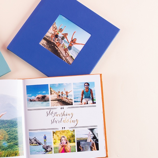 Personalisierbares Fotobuch im quadratischen 20 x 20 cm oder 30 x 30 cm Format mit Hardcover aus Öko-Leder oder Textilgewebe u. Sichtfenster