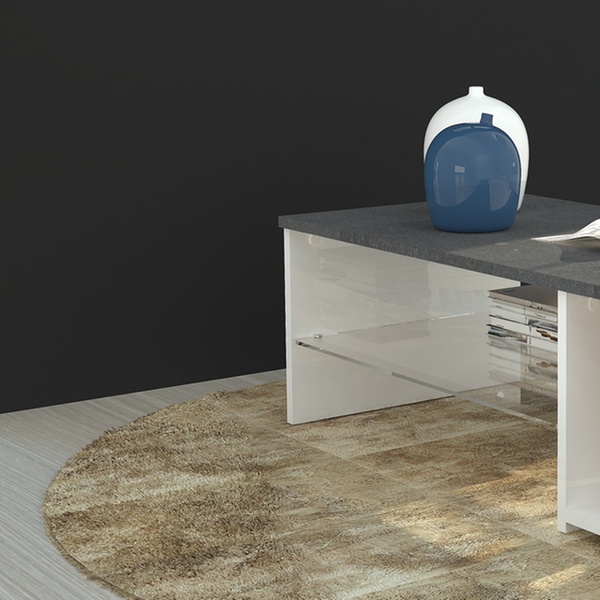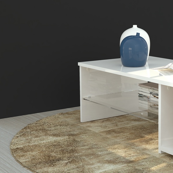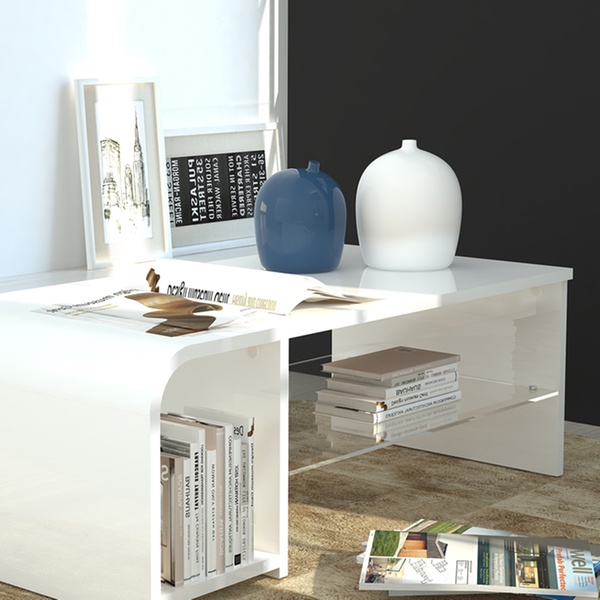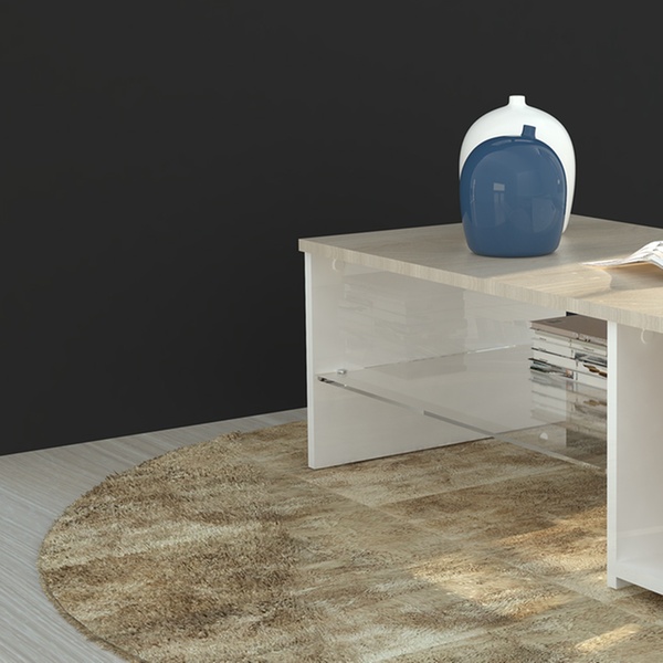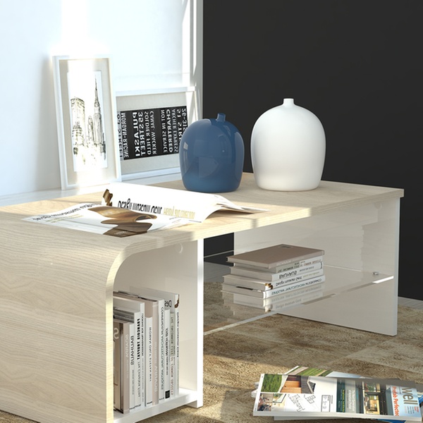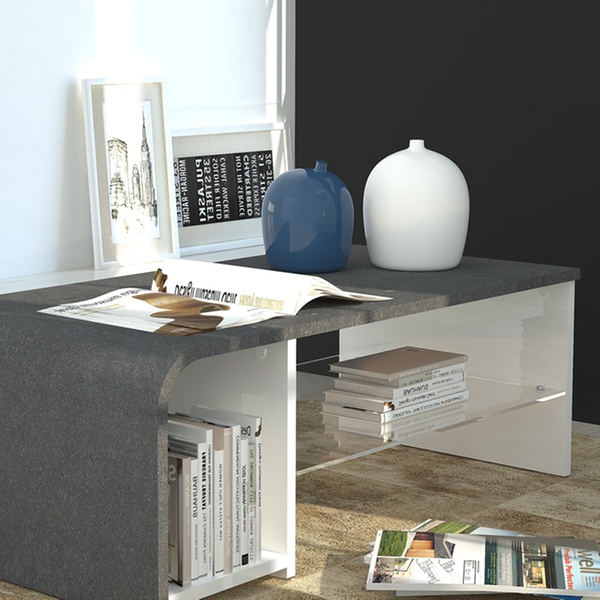 Ein moderner Couchtisch mit Glasfach, der im Wohnzimmer stylish aussieht