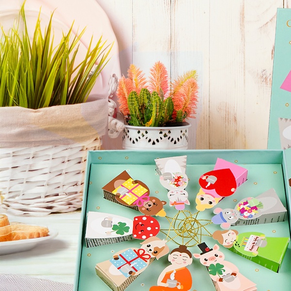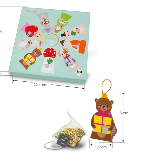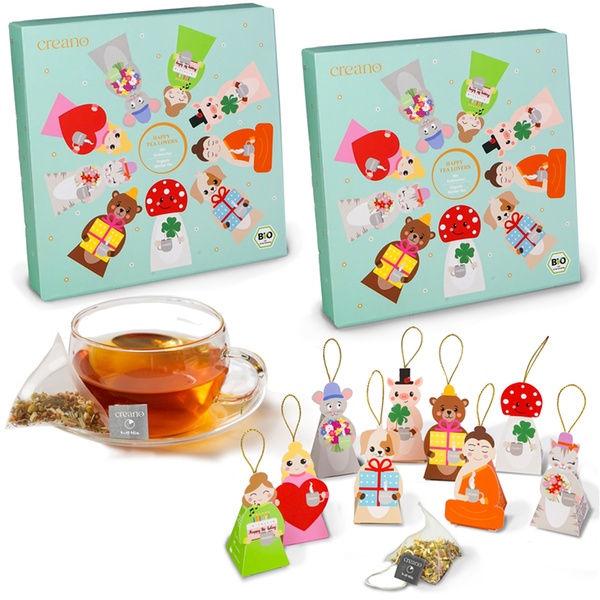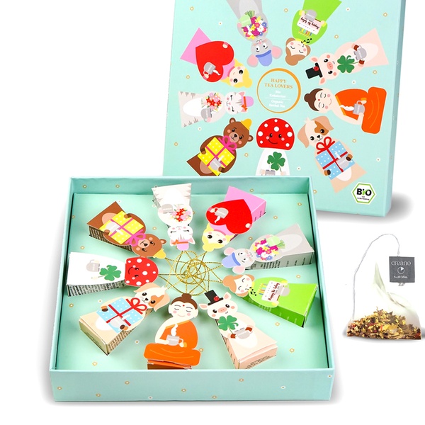 Liebevoll gestaltetes Bio-Tee Geschenkset mit 9 dekorativen Figuren und koffeinfreien Sorten für echten Genuss