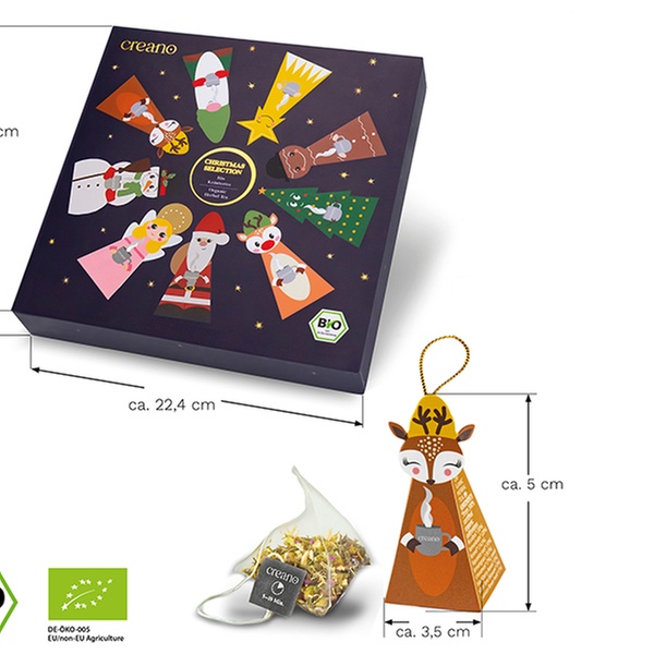 • Lieferumfang: Geschenkbox mit 9 Bio-Teesorten und weihnachtlichen Figuren