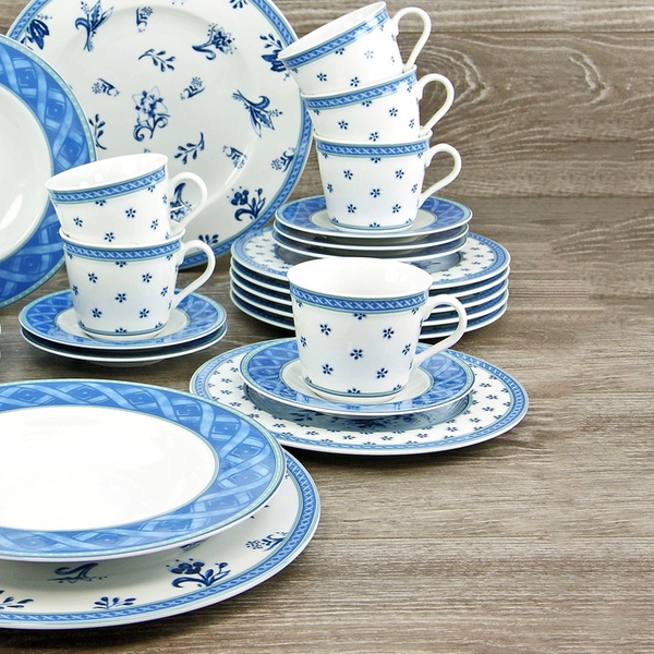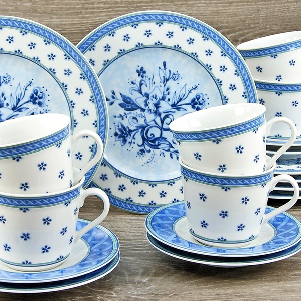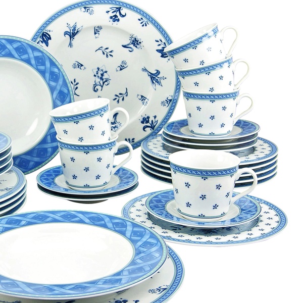 Elegantes Kaffee-, Tafel. oder Kombiservice im blauen Volldekor aus feinster, europäischer Produktion
