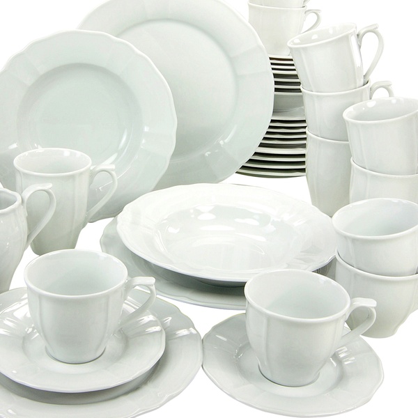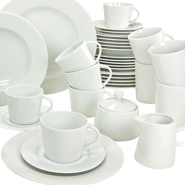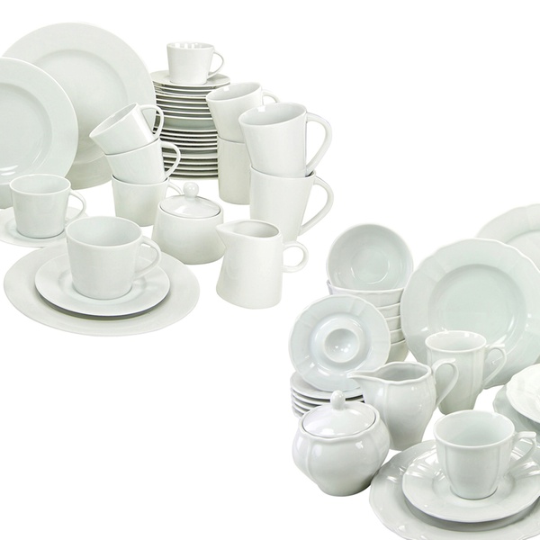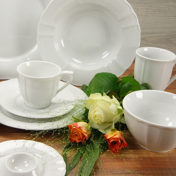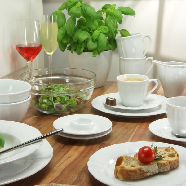 Kompletter Porzellan-Service im zeitlosem Weiß für den Empfang von Gästen und den Alltag
