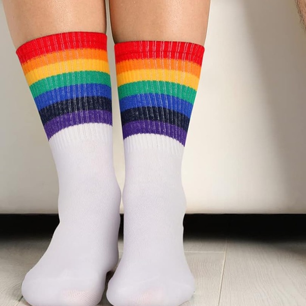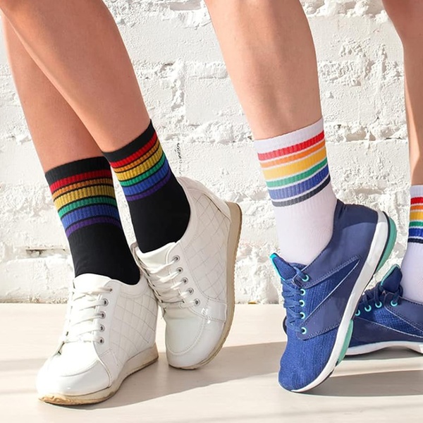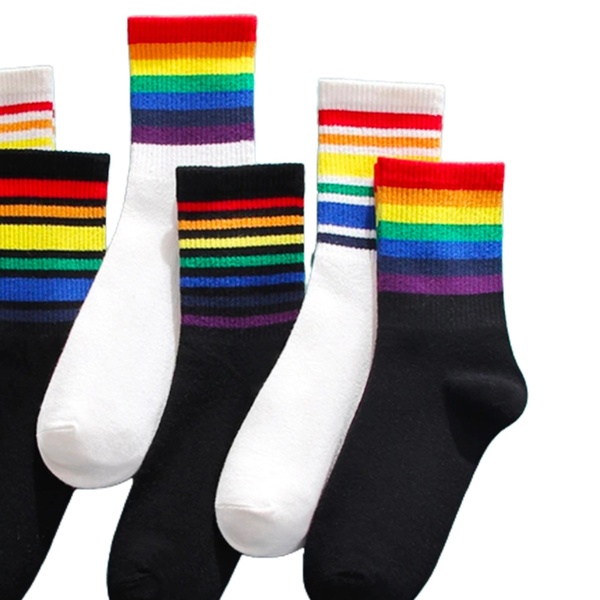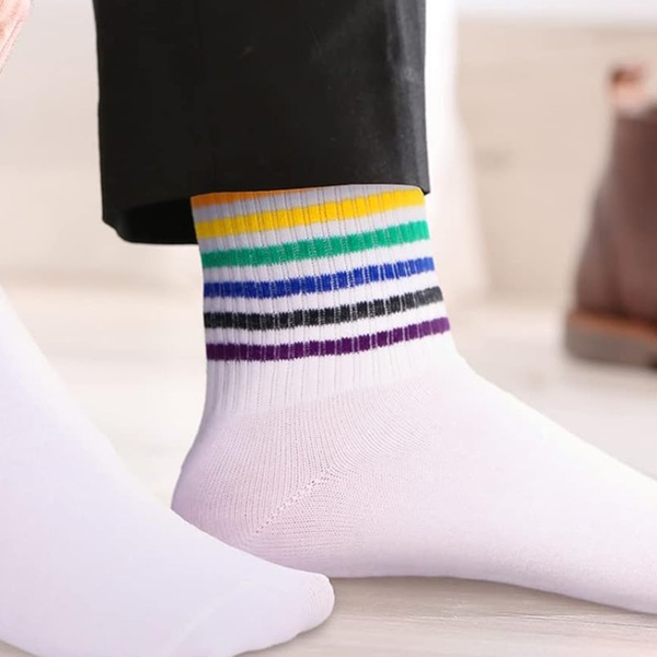 Bunte Crew-Socken im Regenbogen-Design verwandeln jeden Schritt in ein kleines Fest – für fröhliche Füße das ganze Jahr über!