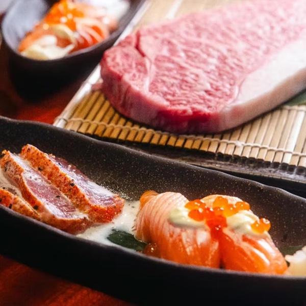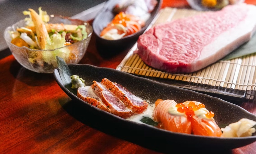 - 5. Gang: Japanisches Wagyu-Steak 150 g mit Shimeji Pilz oder Teppanyaki-zwei Black Tiger Riesengarnelen