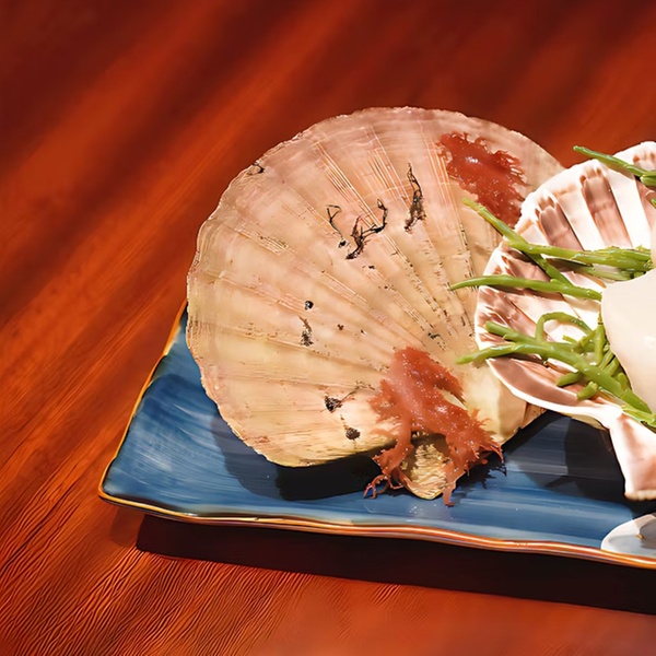 - 4. Gang: Gebratene Jakobsmuschelfleisch (2 Stück), Garnelen Salikonia & Sweet Miso