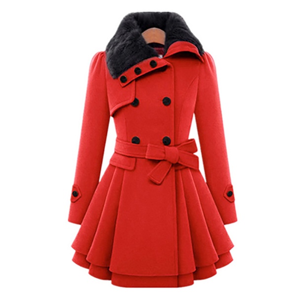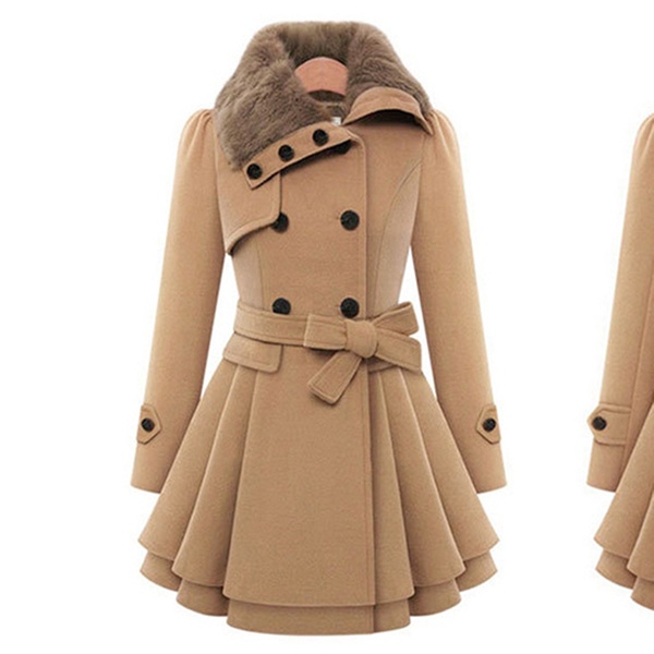 Zweireihiger Damen-Wintermantel mit Gürtel und dekorativem Kragen in Fell-Optik für kalte Wintertage