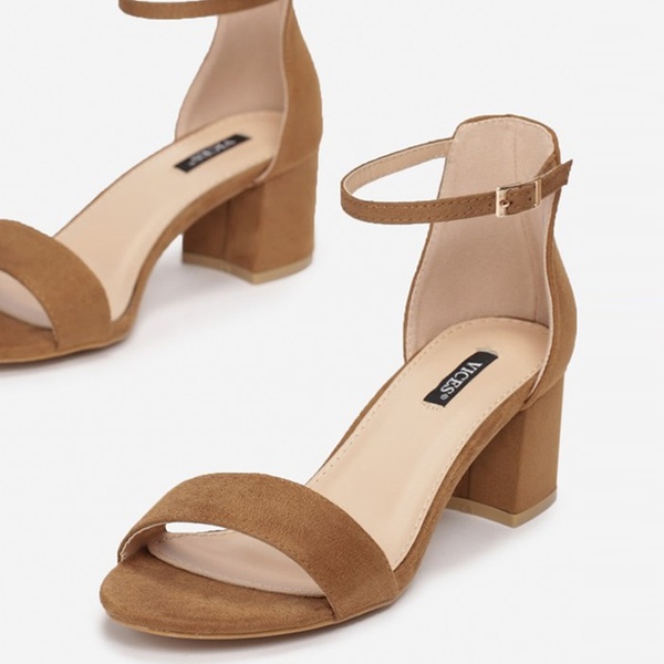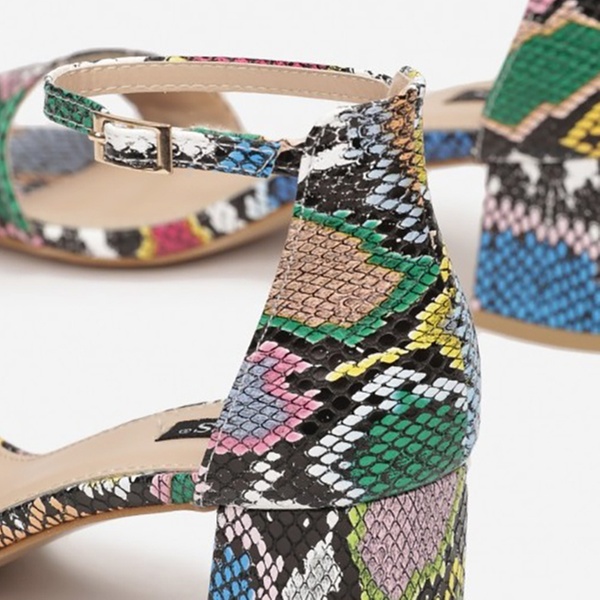 Die Damen-Sandalen mit Blockabsatz bestehen aus Öko-Leder, haben einen Schnallenverschluss und können einfach zum Outfit kombiniert werden