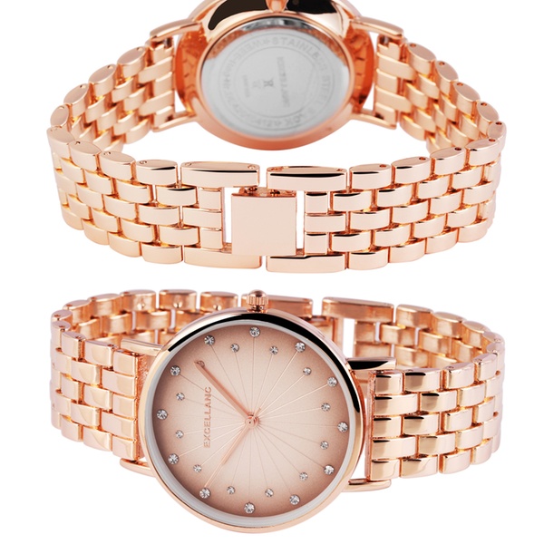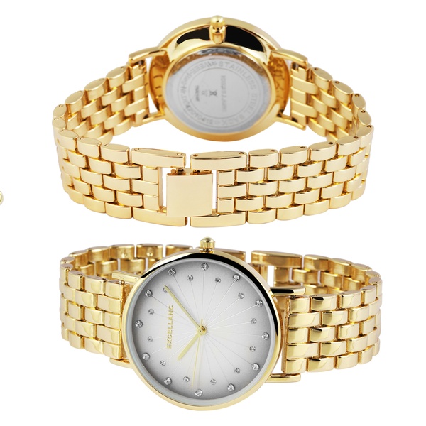 Elegante Damen-Uhr mit Kristallen von Excellanc mit Analog-Anzeige, Falschließe und hochwertigem Quarzwerk