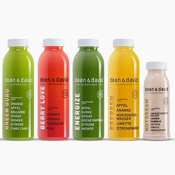 Unter dem Slogan „Fresh to eat“ bietet dean&david Superfood im Online-Shop kaltgepresste Säfte und köstliche Suppen, die schon aus den dean & david Stores bekannt sind. Schonende Zubereitung ohne Konservierungs- und Zusatzstoffe sowie bedingungslose Frische sind hier eine Selbstverständlichkeit. Die Inspiration bekam Gründer David Baumgartner auf seinen Reisen von New Yorker Salatbars, aus australischen frischen Säften und Smoothies sowie scharfen Thai-Currys und Suppen aus Südostasien. Mit der Ernährungsexpertin Teresa Tesche von der Universität Weihenstephan entwickelte er dann Rezepte für unkomplizierte, moderne und urbane Produkte, mit denen er von München aus den deutschen Markt erobert.