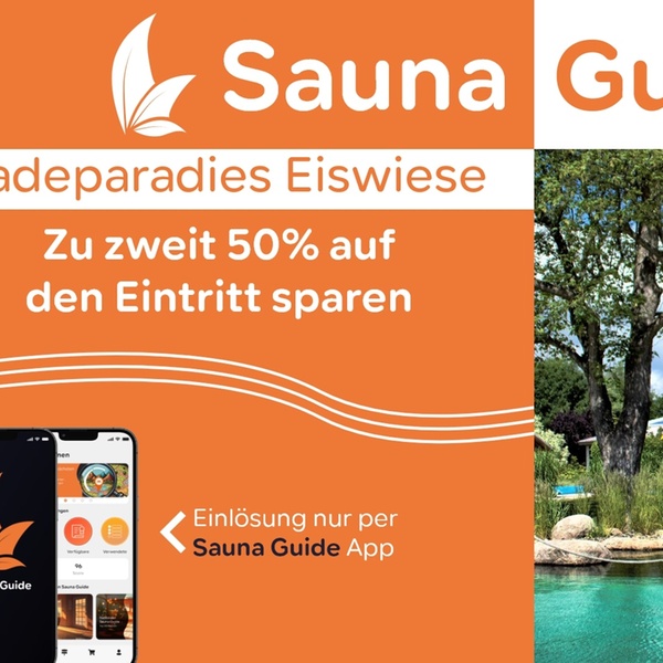 Bei Option 1 einen „2 für 1“ Gutschein für das Badeparadies Eiswiese inkl. digitaler Probesaunaführer erwerben. Vor Ort noch eine Karte zum Regulärpreis kaufen und mit dem Saunaführer-Gutschein die 2. Tageskarte kostenlos erhalten. Insgesamt mit dem Groupon Gutschein bis zu 17,55 € (35 %) zu Zweit sparen. Der in Option 1 aufgeführte 2:1 Gutschein ist in jedem Fall auch in der Option 2 enthalten.
