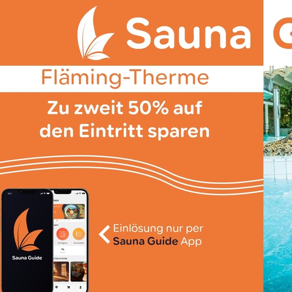 Bei Option 1 einen „2 für 1“ Gutschein für die Fläming-Therme inkl. Digitaler Probesaunaführer erwerben. Vor Ort noch eine Karte zum Regulärpreis kaufen und mit dem Saunaführer-Gutschein die 2. Tageskarte kostenlos erhalten. Der in Option 1 aufgeführte 2:1 Gutschein ist in jedem Fall auch in der Optionen 2 enthalten.