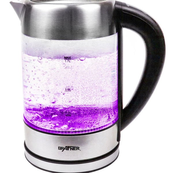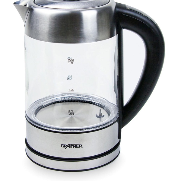 - Lieferumfang:1x Grafner Glas-Wasserkocher mit Temperaturwahl, Warmhaltefunktion, LED-Beleuchtung mit Farbwechsel, Dechlorierfunktion und Bedienungsanleitung