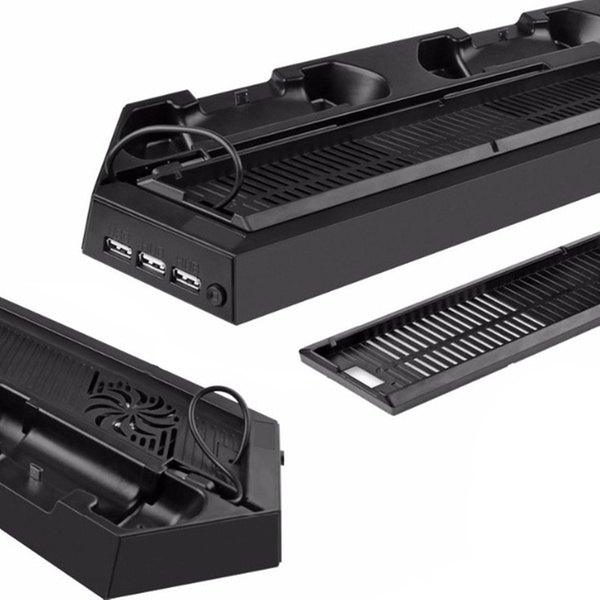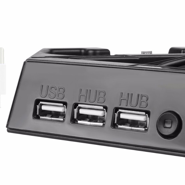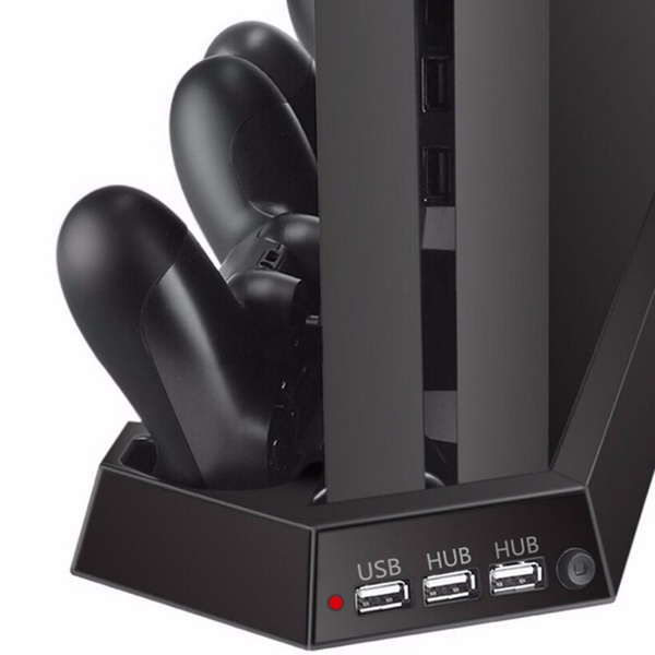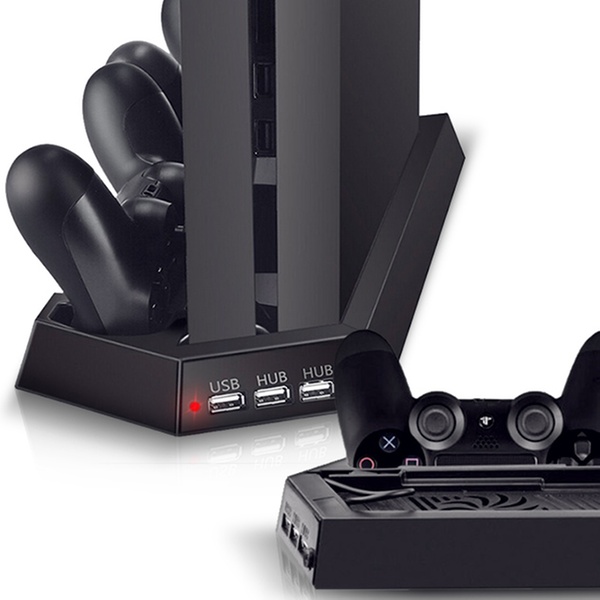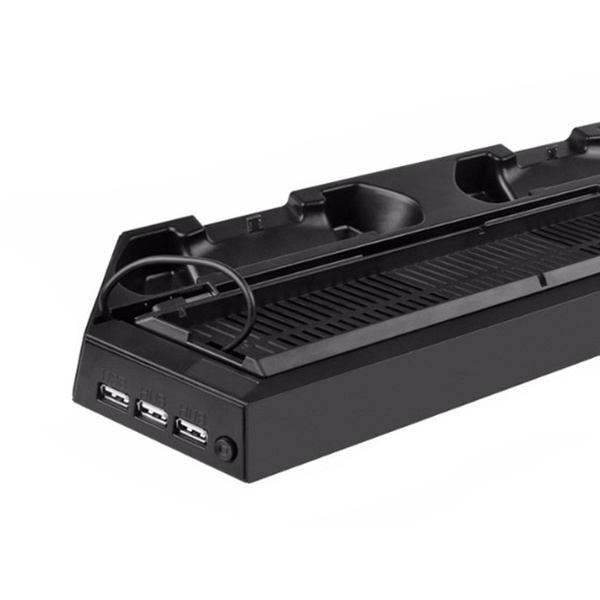 Kompakte Dockingstation für Playstation 4 / 4 Slim mit Kühlung, Ladestation für 2 Controller und USB-HUB