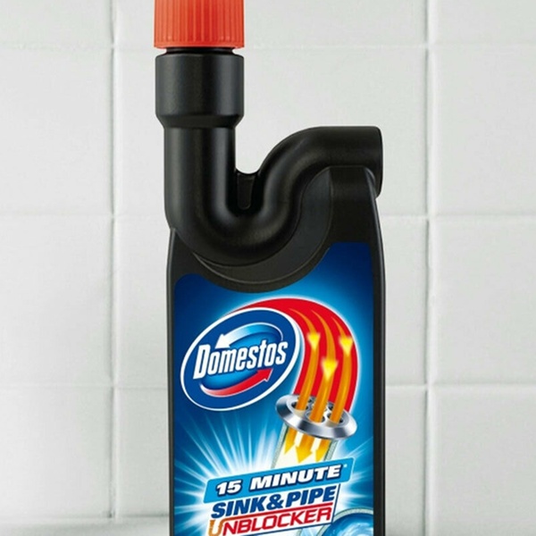 Der Rohrreiniger von Domestos baut effizient Verstopfungen ab, beseitigt üblen Geruch und tötet Keime ab
