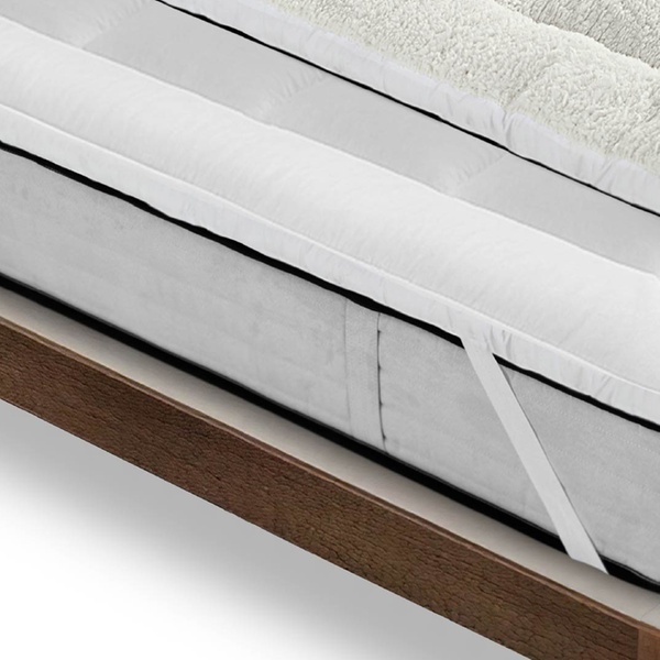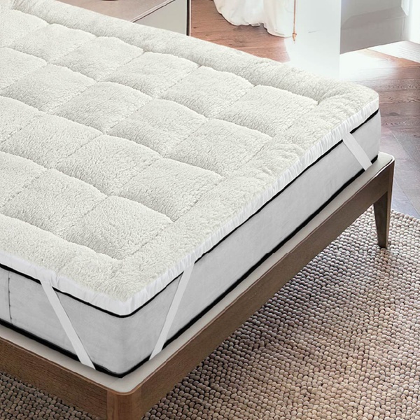 Doppelseitige Matratzenauflage mit kuscheliger Sherpa-Seite und kühlender Mikrofaserseite sorgt für perfekten Komfort das ganze Jahr