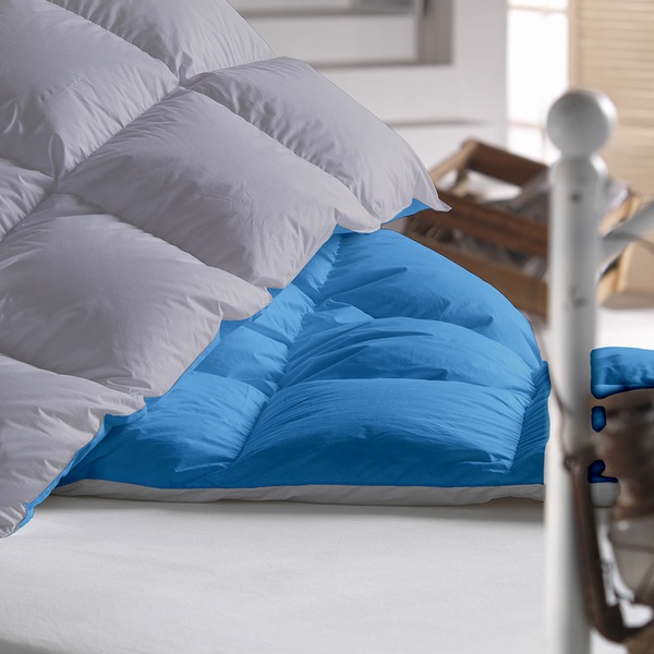 Diese wendbare Steppdecke mit Füllung aus Gänsefedern und Daunen sorgt für Wärme an kalten Wintertagen und lässt sich platzsparend verstauen