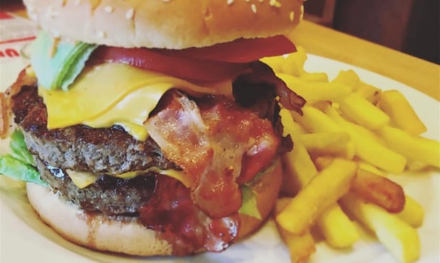 Klassischer Burger oder exotische Varianten mit z. B. Emu-Fleisch, dazu gibt es knusperige Pommes frites und leckeren Krautsalat - mittags und abends verfügbar