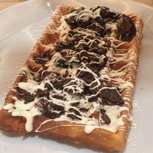 Heiße Waffeln mit weiße Schokolade & Oreo