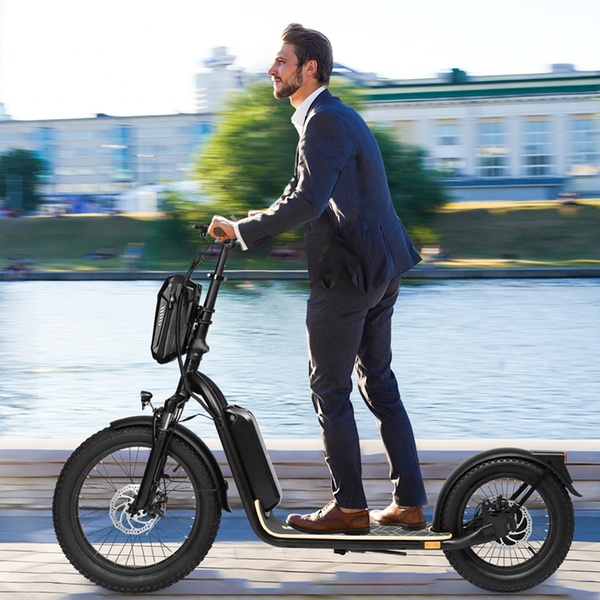 Dieser E-Scooter mit Straßenzulassung verfügt über große Räder mit Profilbereifung, die für ausgezeichnete Haftung auf Straßen sowie im Gelände sorgen