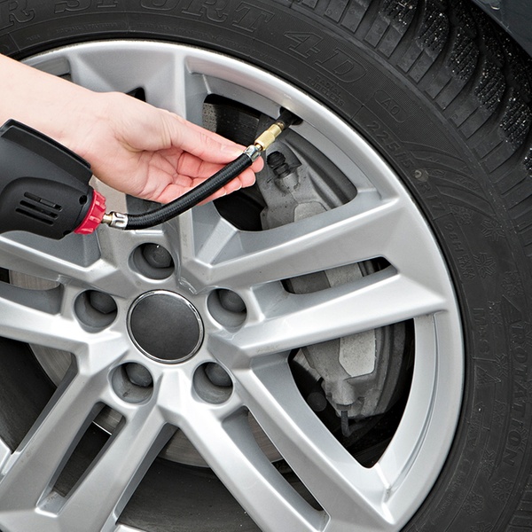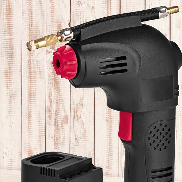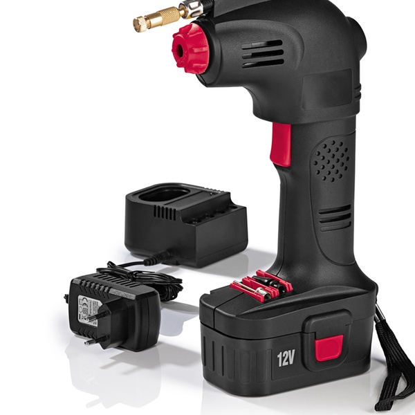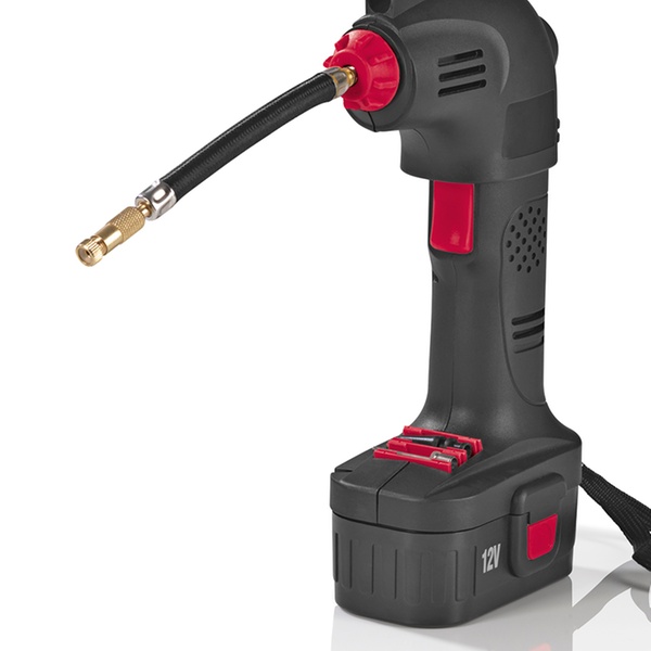 EASYmaxx Akku-Handkompressor 12 V in Schwarz-Rot zum Aufpumpen von Reifen, Luftmatratzen, Bällen u.v.m.