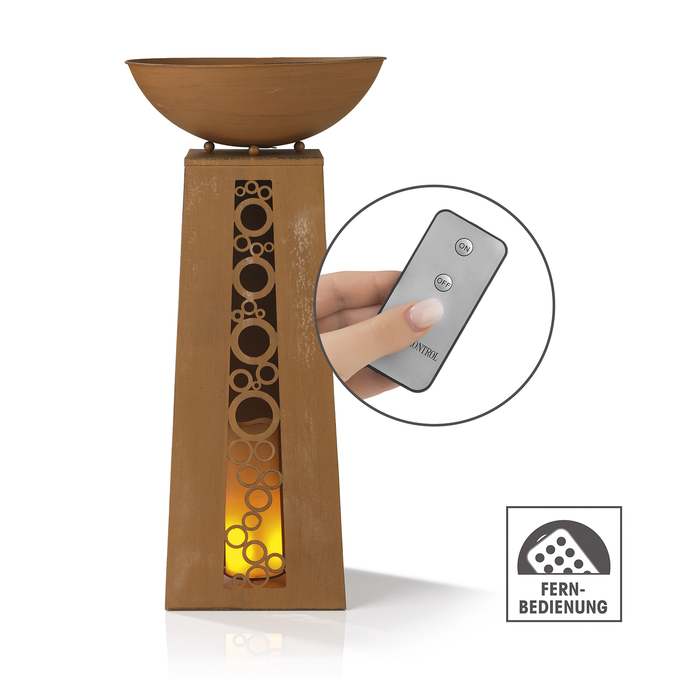 Der romantische Flammenzauber mit 48 LEDs als Deko-Säule mit Pflanzschale für Wohnzimmer, Garten, Terrasse und Balkon