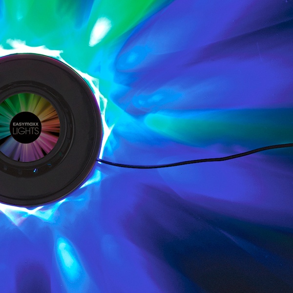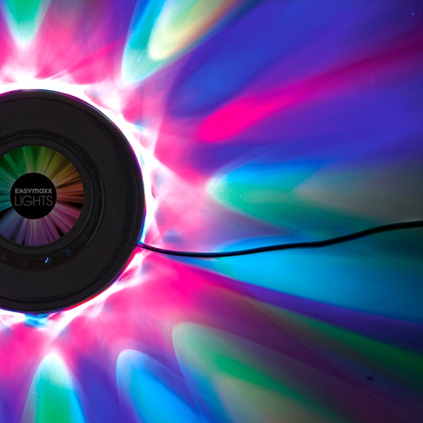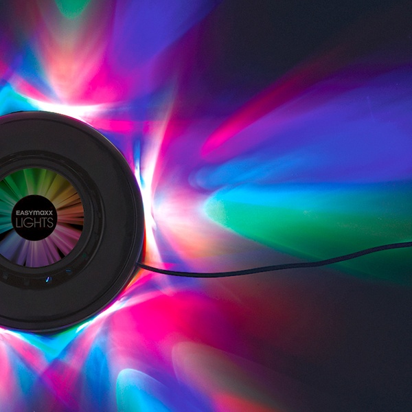 - Schillernde Farbmuster werden an Wände, Decke u.v.m. projiziert