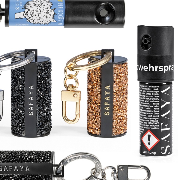 Tierabwehrspray in kompakter Taschengröße oder Alamsirene mit 110 dB, um sich gegen Angriffe von aggressiven Tieren wehren zu können