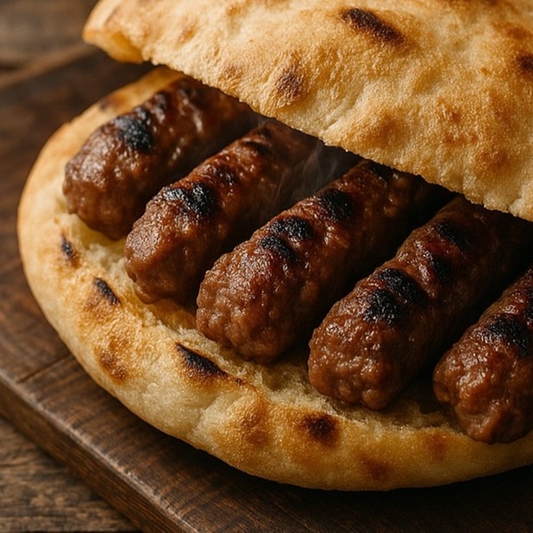 Saftige Ćevapčići im fluffigen bosnischen Brot – wähle deine Lieblingssauce und genieße Balkan-Genuss pur