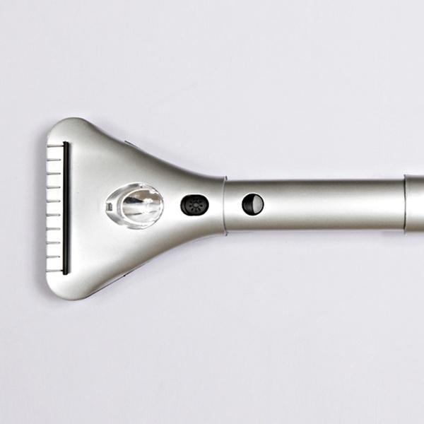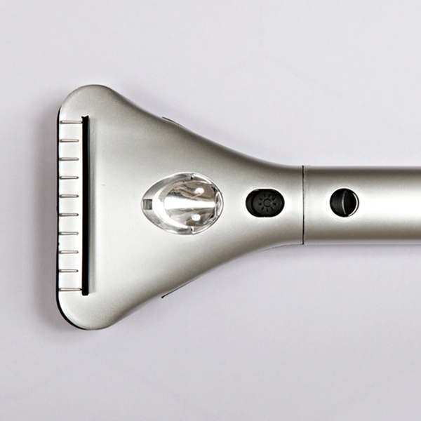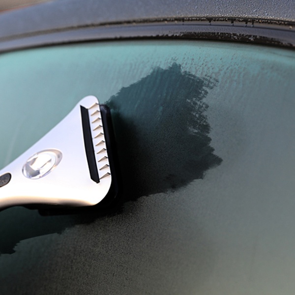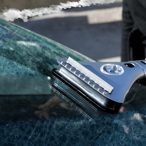 - Zur Entfernung der Eisreste Gummi-Seite des Schabers verwende, um Beschädigung der Scheibe zu vermeiden